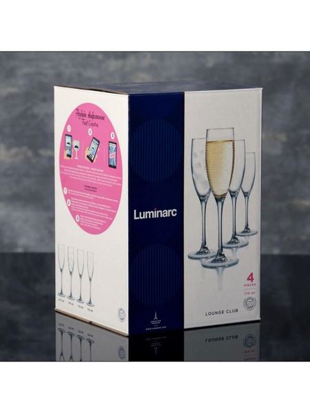 # Набор Luminarc "Лаунж клаб" состоит из четырех фужеров, выполненных из прочного стекла. Изделия оснащены высокими ножками и предназначены для подачи шампанского. Они сочетают в себе элегантный дизайн и функциональность. Благодаря такому набору пить напитки будет еще вкуснее.Набор фужеров Luminarc "Лаунж клаб" прекрасно оформит праздничный стол и создаст приятную атмосферу за романтическим ужином. Такой набор также станет хорошим подарком к любому случаю. Можно мыть в посудомоечной машине.