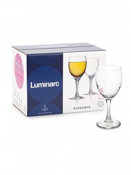 Набор бокалов для вина классической формы позволяют вкусу вина раскрыться еще сильнее. В набор входят 6 бокалов объемом 245 мл. Набор бокалов для красного и белого вина Luminarc Elegance - это отличный подарок на Новый год, на день рождения, на 8 марта. Фужеры изготовлены из прочного стекла, которое не трескается и не темнеет со временем. Создайте вечеринку мечты вместе с посудой бренда Luminarc.