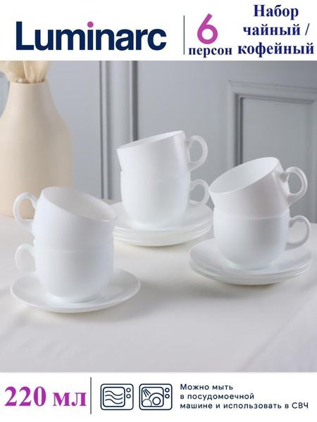 Чайный набор / чайный сервиз БЕЛЫЙ классический 220 мл от LUMINARC создан для тех, кто любит стильные и функциональные предметы интерьера. Он станет прекрасным дополнением к Вашему чаепитию вместе с семьей или друзьями. Набор изготовлен из ударопрочного стекла, которое устойчиво к появлению царапин и внешним повреждениям. Оно не мутнеет со временем, сохраняет первоначальный блеск и прозрачность. По сравнению с обычной посудой, стекло в 2-3 раза прочнее, и при падении разбивается на крупные неострые куски. Стекло гигиенично, не боится перепадов температур, поэтому его можно мыть в посудомоечной машине даже при высоких температурах. Квадратная форма чашек в сочетании с цветными полупрозрачными блюдцами создаст яркое настроение и атмосферу в Вашем доме. Красочная упаковка набора позволяет использовать его в качестве подарка. В состав набора входит : кружка 6 шт 220 мл и блюдце 6 шт 14см.